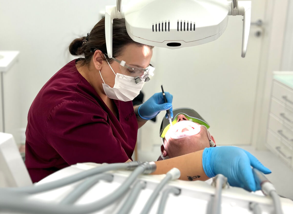 Jak wygląda profesjonalny zabieg fluoryzacji zębów w gabinecie stomatologicznym? Procedura zawsze rozpoczyna się od dokładnego oczyszczenia zębów i usunięcia kamienia nazębnego oraz osadu.