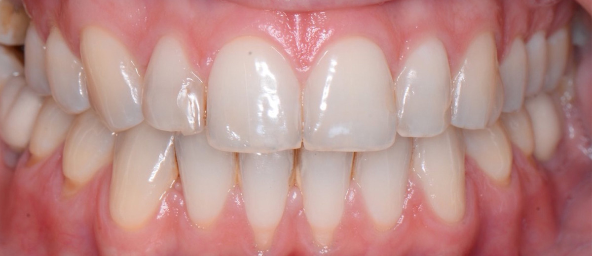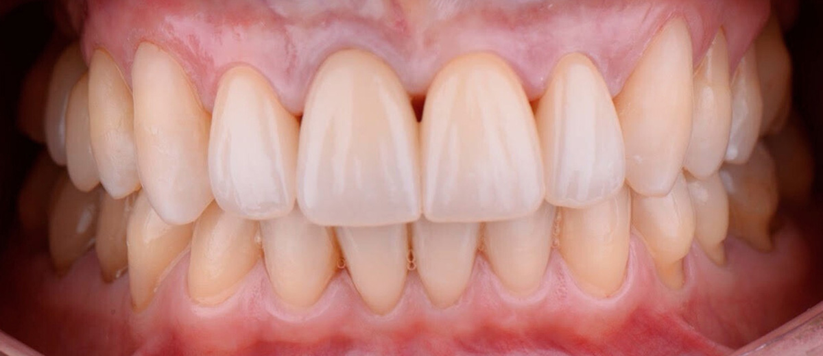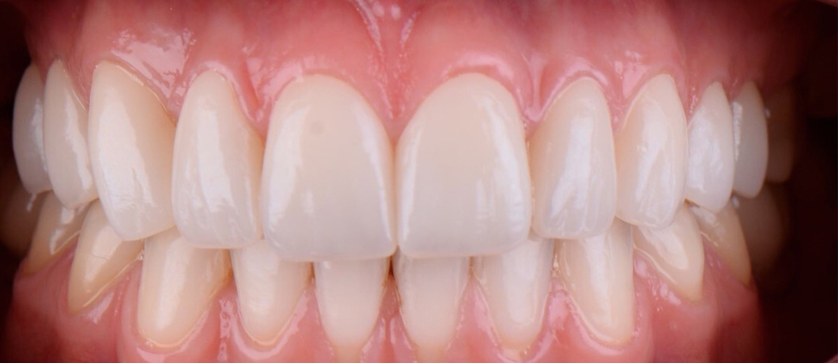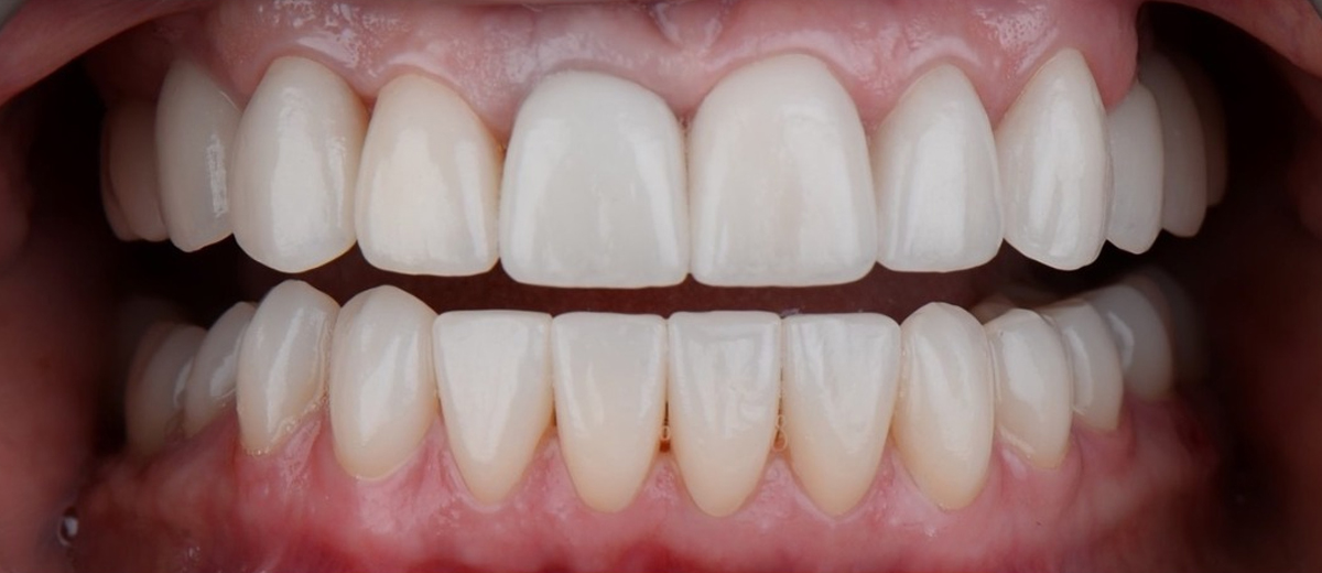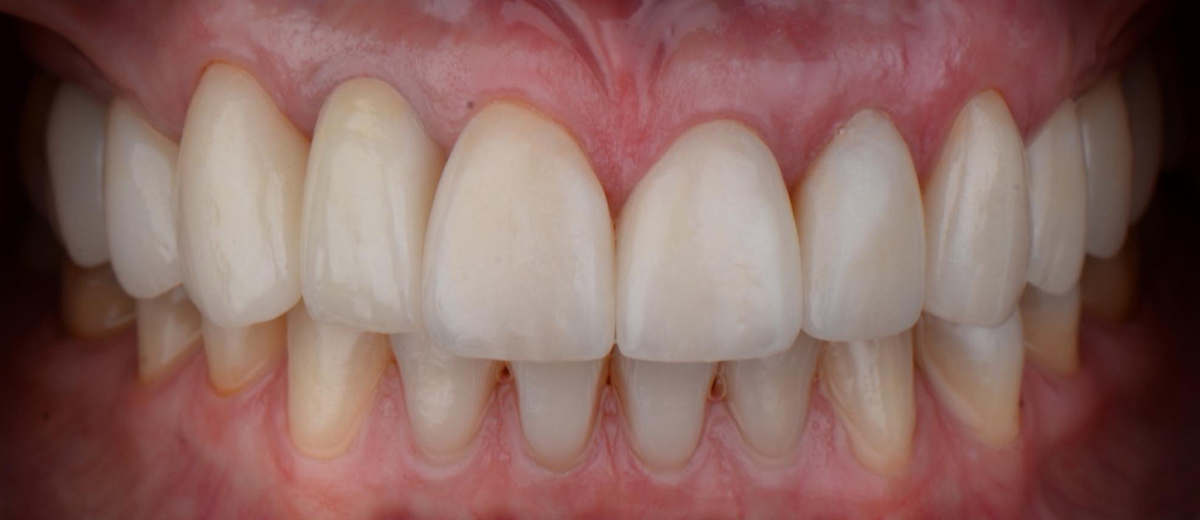 Po zakończeniu leczenia ortodontycznego przyszedł czas na etapy protetyczne. Na górnym łuku zębowym wykonaliśmy korony oraz licówki pełnoceramiczne, które nie tylko poprawiły estetykę uśmiechu, ale również przywróciły pełną funkcjonalność. W dolnej części zębów zastosowaliśmy bonding i odbudowy kompozytowe typu flow injection, co idealnie dopełniło efekt końcowy.